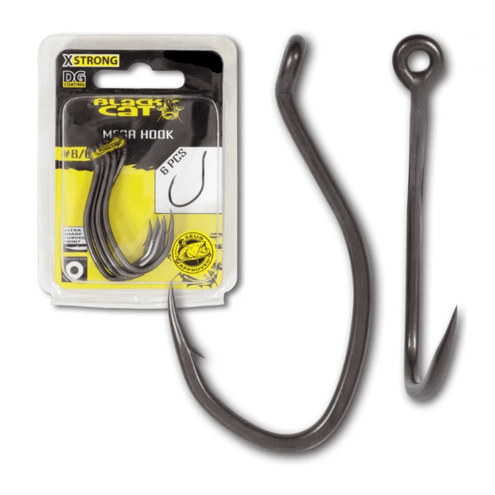 Die lange, scharfe Hakenspitze dringt dabei spielend ins Wallermaul ein. Egal, ob bei einer Deadbait-Montage oder einem Mehrhakensystem für lebende Köderfische. Soll ein Einzelhaken verwendet werden, dann ist der Mega Hook die richtige Wahl. Dank des gebogenen und verschweißten Öhrs kann selbst monofiles Vorfachmaterial problemlos verwendet werden. Dieser Einzelhaken gehört in jede Angeltasche!