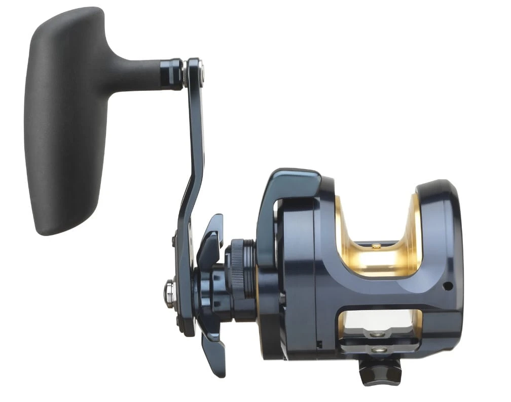 Mit Brems-Click Sound bei Schnurfreigabe im Drill. Die Kurbel kann für hohen Druck von 85mm auf 75mm verkürzt werden. Ideal zum Slow-Jigging und zum Angeln auf Köhler, Dorsch und Heilbutt im Mittelwasser!