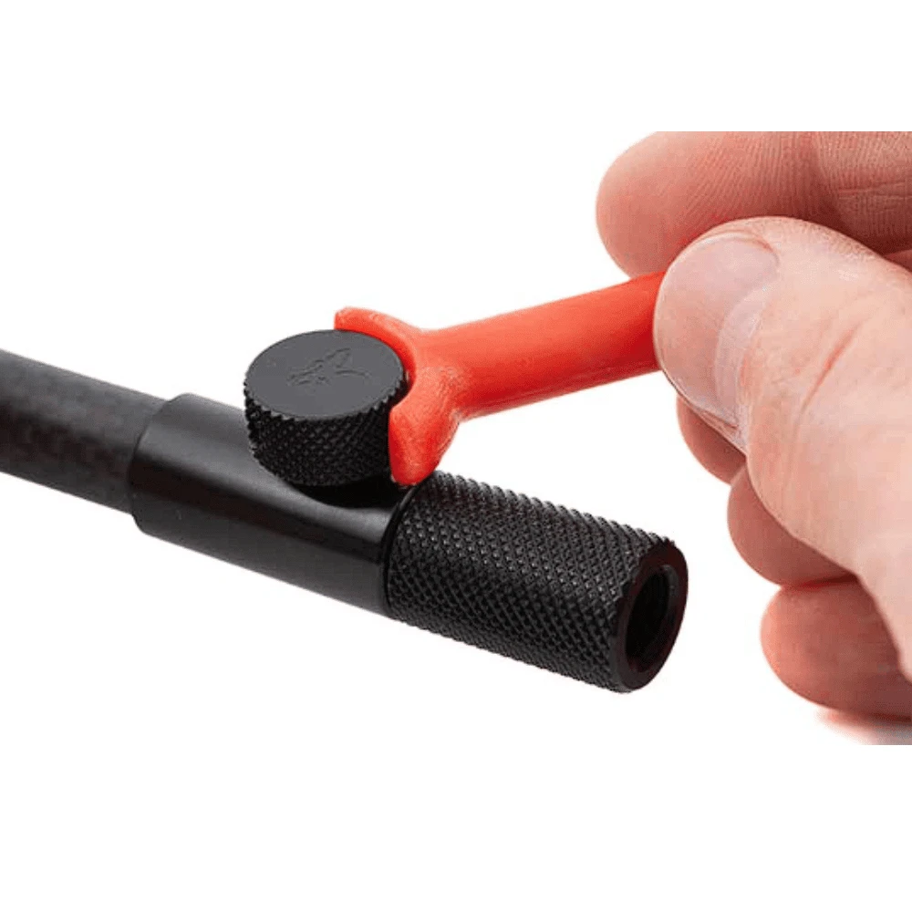 - Anodisierte Profilfeststellschraube mit Loch, um die Schraube mit dem Black Label Slim Tightening Tool noch besser anziehen zu können