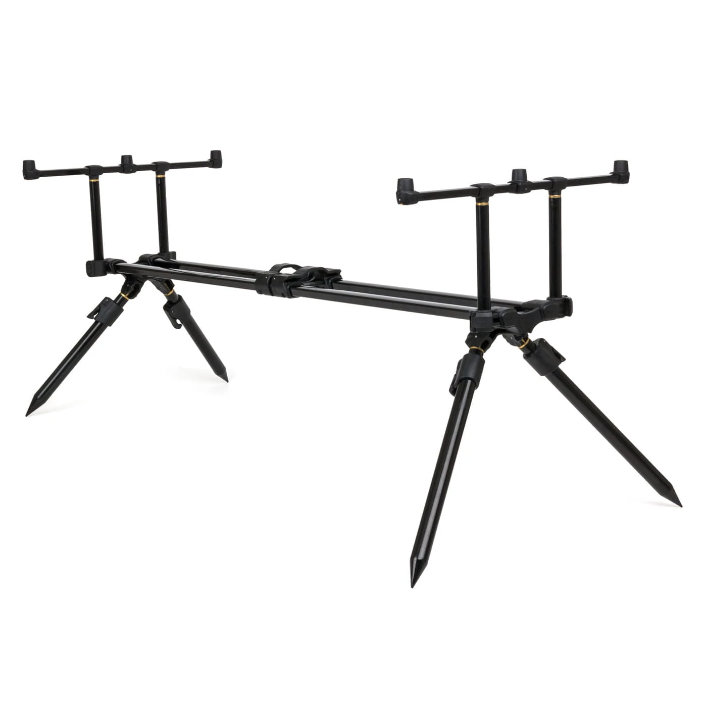 Die Beine des Horizon Duo Rod Pods lassen sich in vier verschiedene Winkelpositionen verstellen, sowie in der Länge teleskopieren und ermöglichen dank der unterschiedlich langen Beinpaare, dass du die Rutenspitze deiner Karpfenruten beim Distanzenageln sehr hoch stellen kannst.