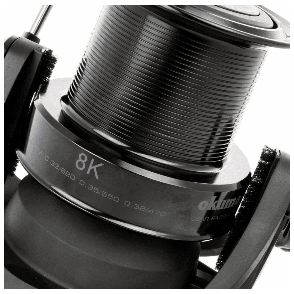 Das Fast Progressive Drag System ermöglicht eine schnelle Anpassung an die eingestellte Bremskraft und die geballte Fighting Power von 39,7lbs oder 18kg sorgen dafür, dass es kaum einen Karpfen in unseren Gewässern gibt, der den Okuma 8K Big Pit Rollen das Wasser reichen kann!