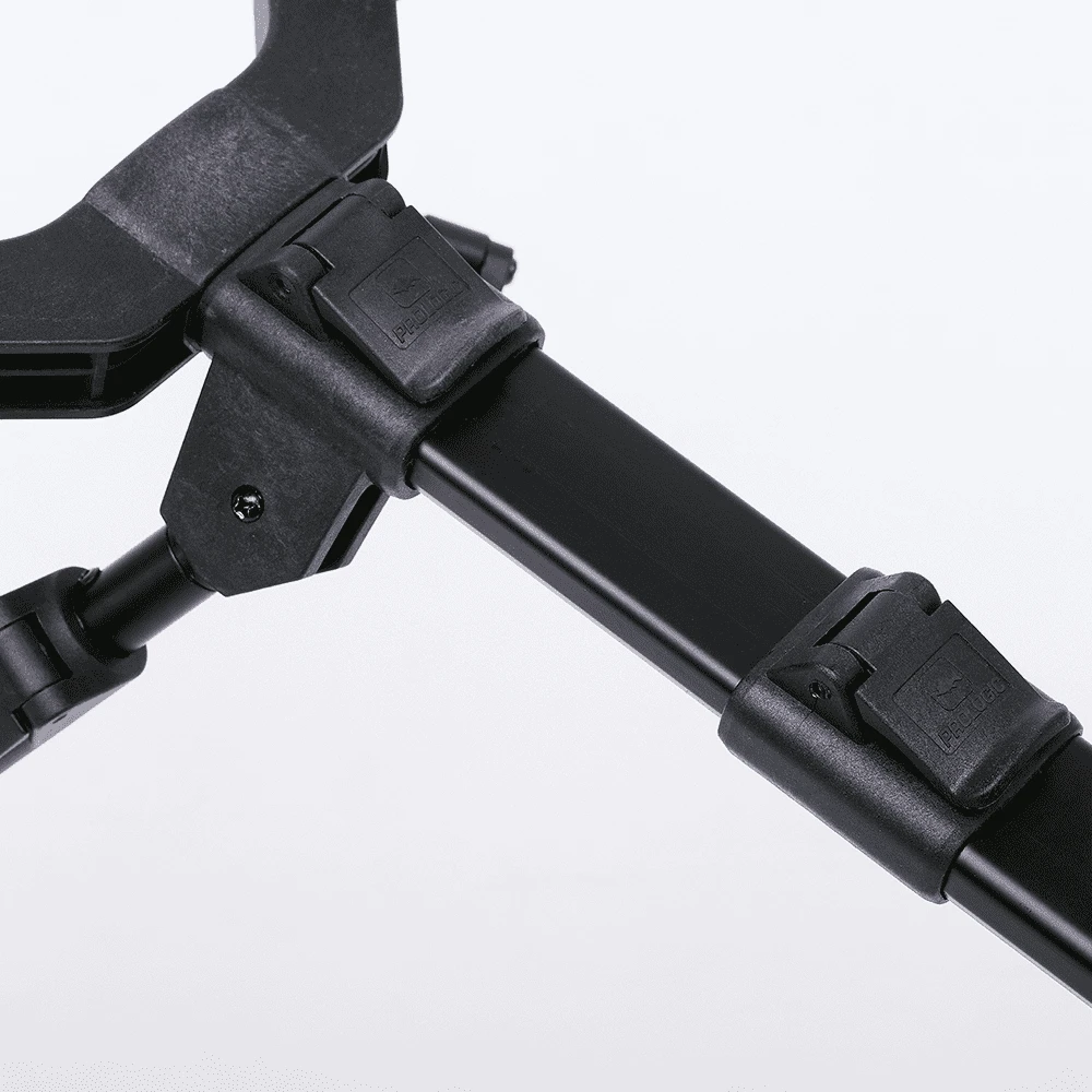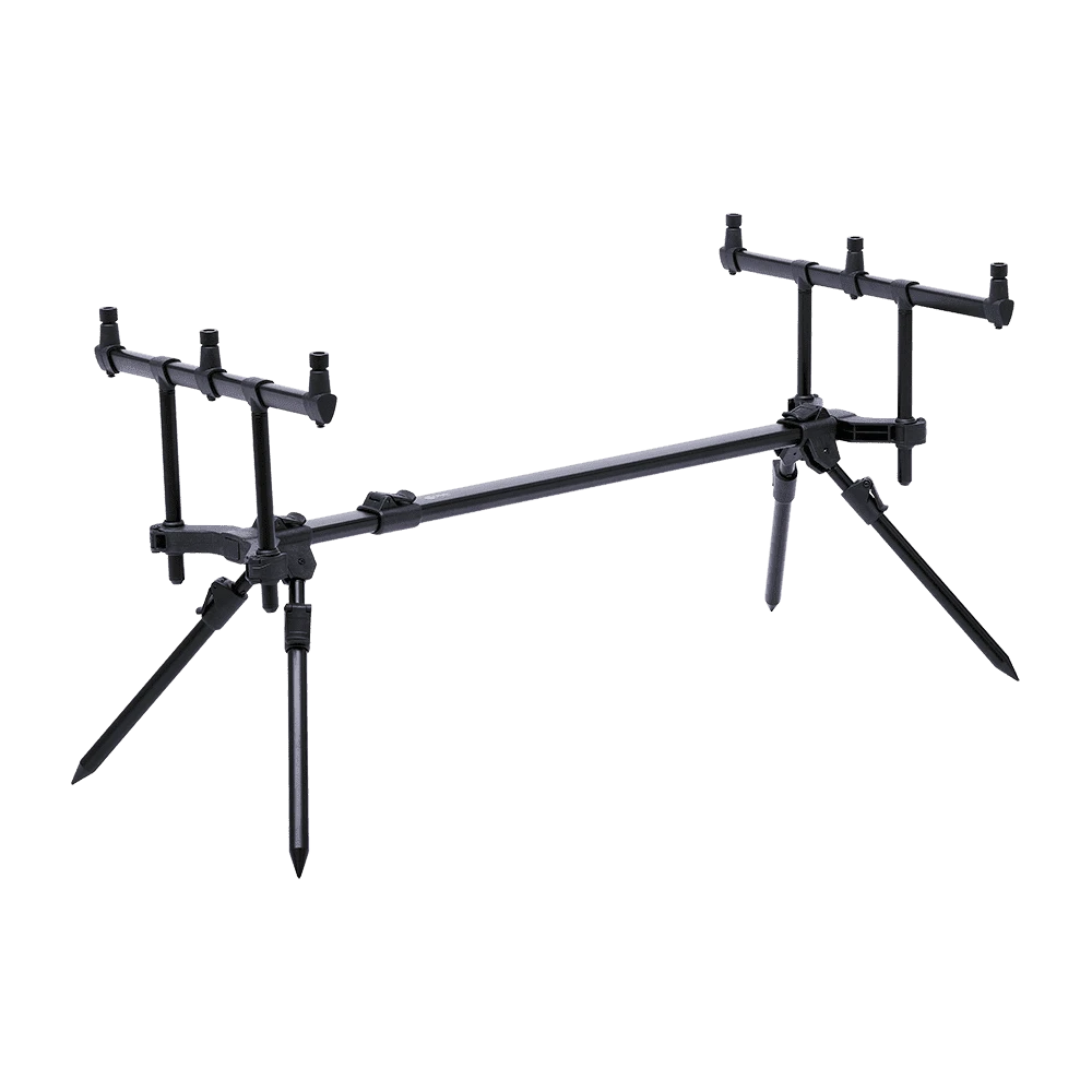 Es kann sowohl in der Länge als auch in der Höhe verstellt werden und bietet eine hervorragende Stabilität in einer Vielzahl von unterschiedlichen Situationen. Die Beine können ebenso in zwei verschiedenen Positionen gesichert werden, damit die Ruten gedreht oder abgesenkt werden können.