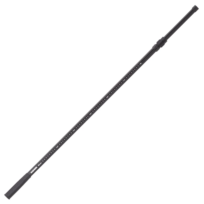 Der Kescherstab des Herstellers Sänger hat eine Gesamtlänge von 240 cm, eine Transportlänge von 126 cm und besteht aus zwei Teilen. Auf dem Kescherstab ist eine integrierte Messskala angebracht. Außerdem ist der Griff mit Gummi beschichtet.